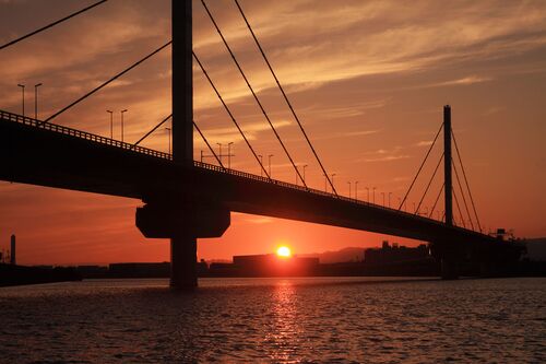 橋の向こうに沈んでいく夕日 あす(6月21日)は夏至、日の出や日の入りが最も北寄りになる時期になった。 きょうはまずまずの天気で、大和川に架かる阪神高速4号湾岸線の斜張橋の夕景を狙った。 川を斜めに横切る橋は、光の線と重なるように交差する形となり…