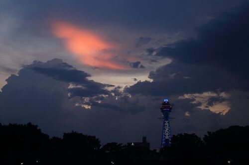 きょうの夕方、天王寺公園から見た通天閣方面 きょうも仕事帰りに、虹を求めて天王寺公園へ行った。 しかし…。 今にも雨が降りそうな雲が空を覆いながら、雨は一滴も降らず。 夕日が雲間から顔を出しそうな西の空からは何の音沙汰もなし。 結局、虹を諦めて…